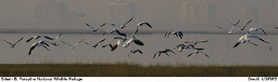 The refuges location is on one of the Atlantic Flyways most active flight paths. The Spring and Fall migrations bring large numbers of waterfowl, wading birds and shorebirds that stop at the refuge to rest and feed. More than 300 species of birds have been observed at the refuge.